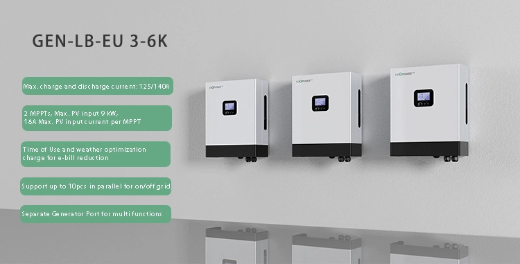 Introduktion af mode Luxpower Gen-LB-EU 5-6K, den ultimative løsning til dine energibehov, designet til at hæve din strømstyringsoplevelse til nye højder. Denne avancerede inverter har et meget effektivt dobbelt MPPT -design, hvilket sikrer, at du maksimerer energien fra dine solcellepaneler, selv under alle vejrforhold.