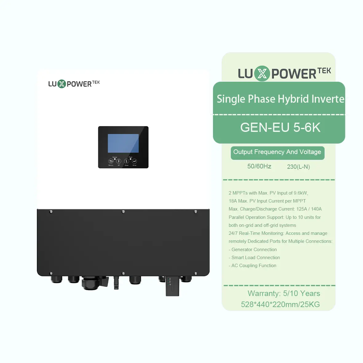 Den nyeste Luxpower Gen2-lb-EU 3-6K er den direkte opgradering til Gen-LB-EU 3-6K, der leverer overlegen ydeevne og modstandsdygtighed. Med dobbelt MPPT -trackere maksimerer det solhøst med en MAX PV -indgang på 9,6 kW. Hver MPPT understøtter 18A og fungerer effektivt på tværs af et bredt 100-530V inputområde.